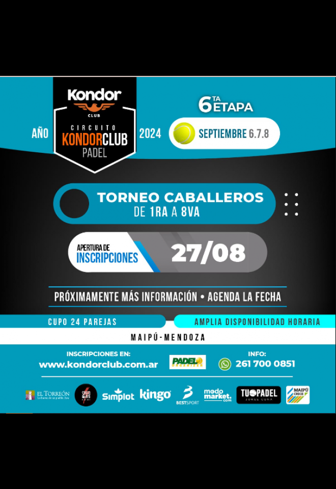 »» Evento: Circuito Caballeros Kondor CLUB 2024 - Etapa 6 »» Localidad: Mendoza »» Fechas: 06/09/2024 al 08/09/2024