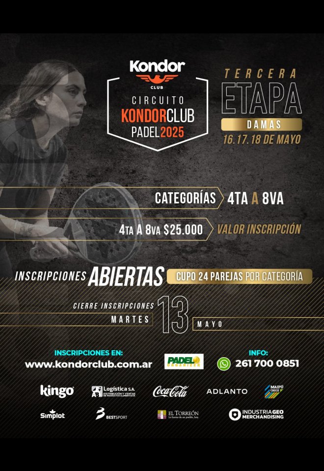 »» Evento: Circuito DAMAS Kondor Club - Etapa 3 »» Localidad: Mendoza »» Fechas: 16/05/2025 al 18/05/2025