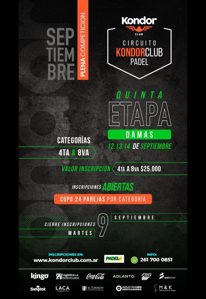 »» Evento: Etapa 5 - DAMAS KONDOR »» Localidad: Mendoza »» Fechas: 12/09/2025 al 14/09/2025