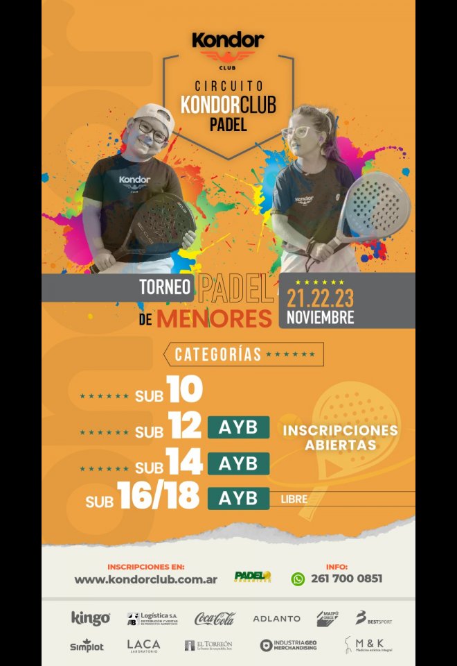 »» Evento: Torneo de Padel de MENORES »» Localidad: Mendoza »» Fechas: 21/11/2025 al 23/11/2025