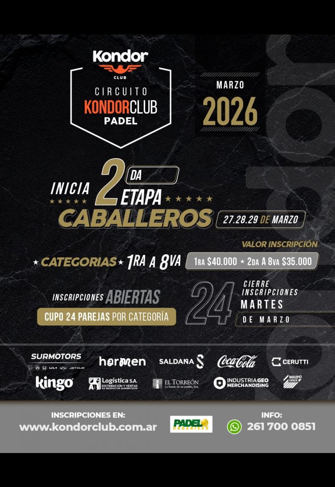 »» Evento: Kondor Club - Etapa 2 2026 »» Localidad: Mendoza »» Fechas: 27/03/2026 al 29/03/2026